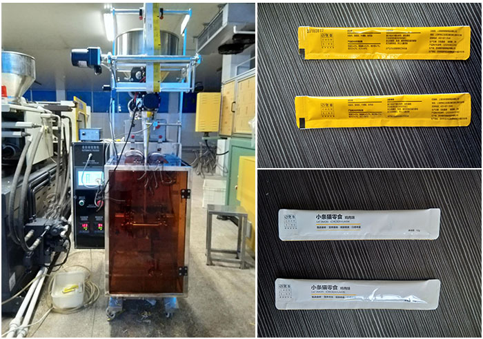 寵幸寵物用品有限公司生產(chǎn)車間-寵物食品包裝機-自動寵物食品包裝機應(yīng)用現(xiàn)場以及寵物食品包裝樣品